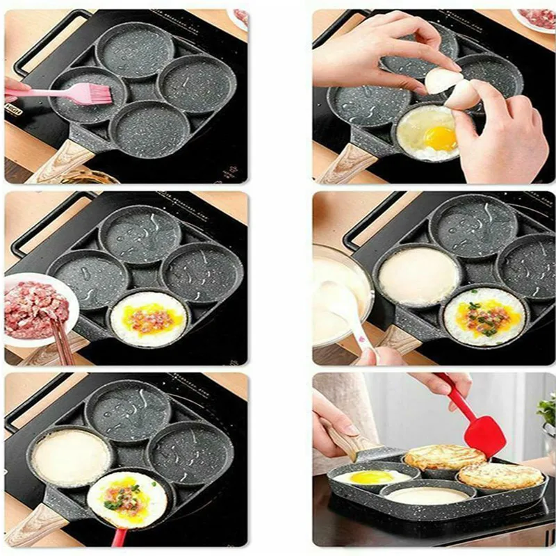 Новая сковорода с 4 отверстиями, кастрюля для приготовления пищи, антипригарная сковорода для приготовления блинов, домашний завтрак, яиц, гамбургеров, кухонная посуда