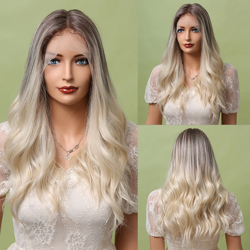 Длинные Синтетические парики для женщин, светлые, естественные волны