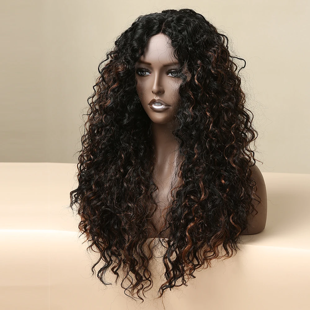 EASIHAIR длинный кудрявый кружевной передний al парик черный смешан...