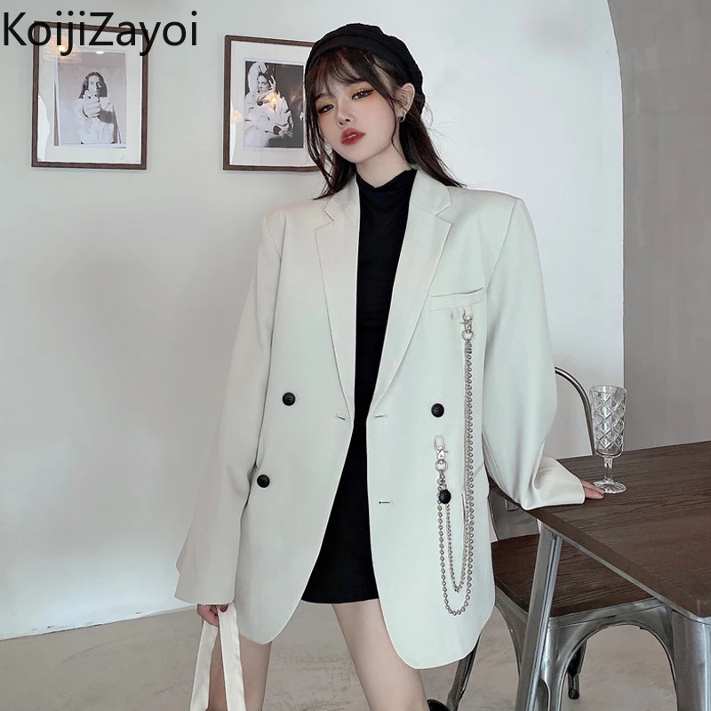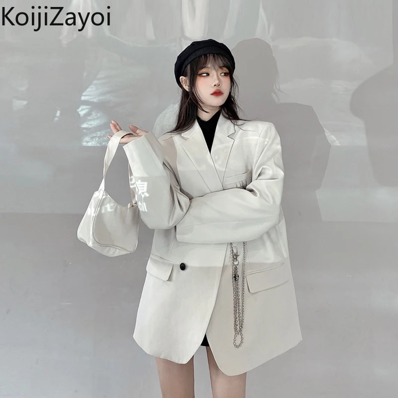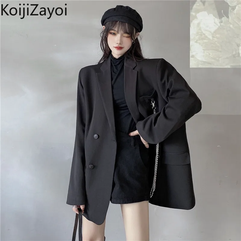 Женский модный Блейзер Koijizayoi в стиле оверсайз с длинными рукавами и отложным воротником, однотонное офисное пальто в Корейском стиле, верхняя одежда в стиле Харадзюку