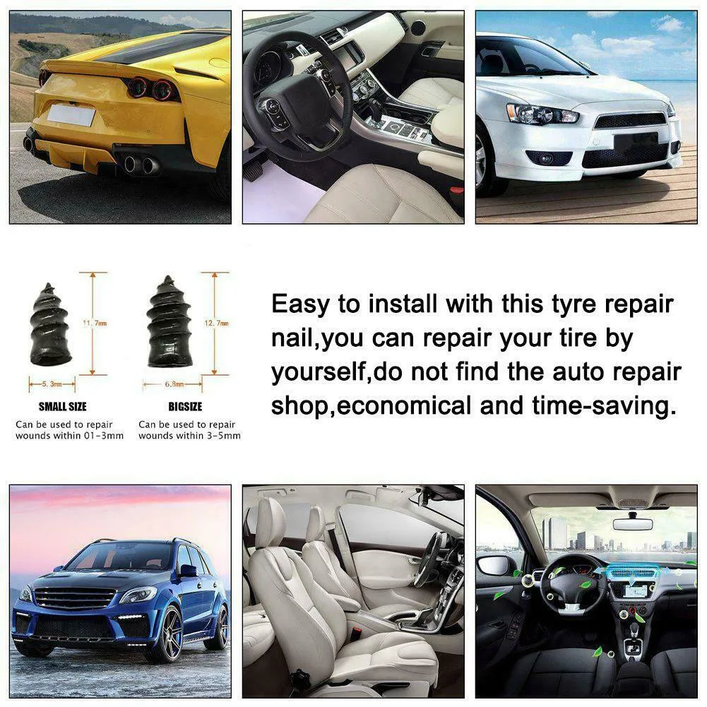 * Без потерь и эффективность 】 Внутренний диаметр менее 5 мм, без повреждений шин, без воздуха Протекание. Просто вставьте гвоздь в обмотку шины, чтобы закончить процесс И эффективные ремонтные работы шин.* 【Идеальная герметичность 】Это Плотно прилегает к шине, высокая прочность соединения, хорошая герметичность Производительность предотвращает попадание воды в рану, поэтому стальной ремень Не ржавеет и не отслаивается.* 【Прост в эксплуатации 】Легко установить С помощью этого гвоздя для ремонта шин вы можете самостоятельно отремонтировать шины, не Найдите авторемонтную мастерскую, экономичную и экономичную.* 【Устойчивость к высоким температурам и износу 】Сделано Из высококачественной резины, обладает высокой термостойкостью, высокой Твердость и высокая износостойкость. Длительный срок службы, один ремонт Достаточно, не нужно два ремонта.* 【Широкое применение 】Профессиональный гвоздь для ремонта проколов, может использоваться на автомобиле, мотоцикле, грузовике и сельскохозяйственных шинах.