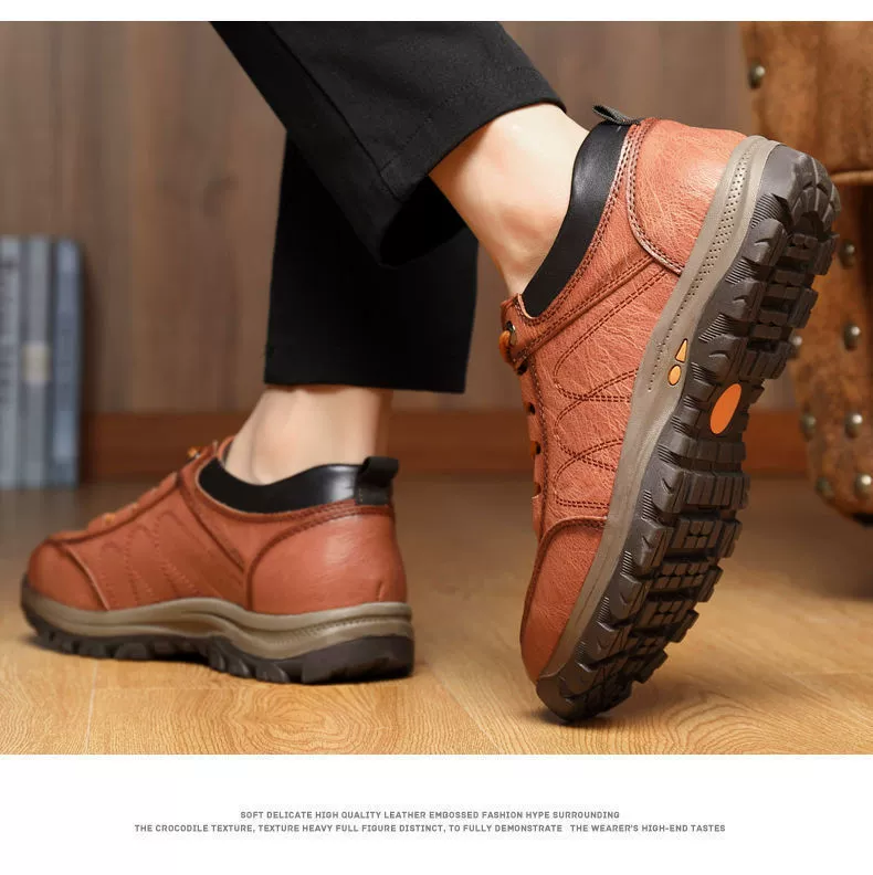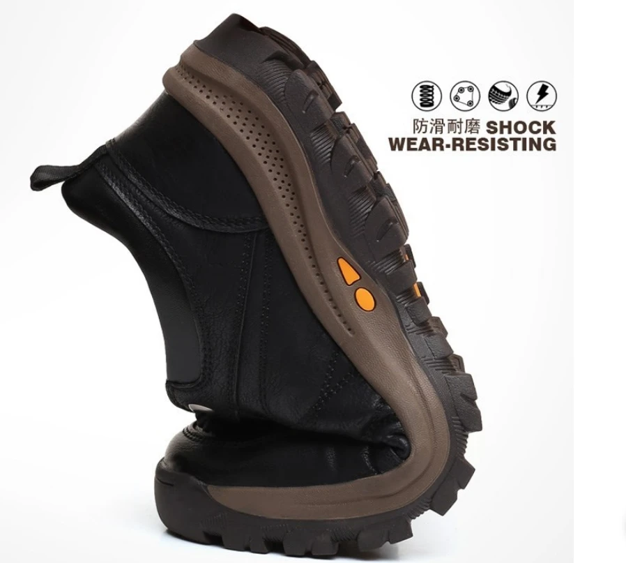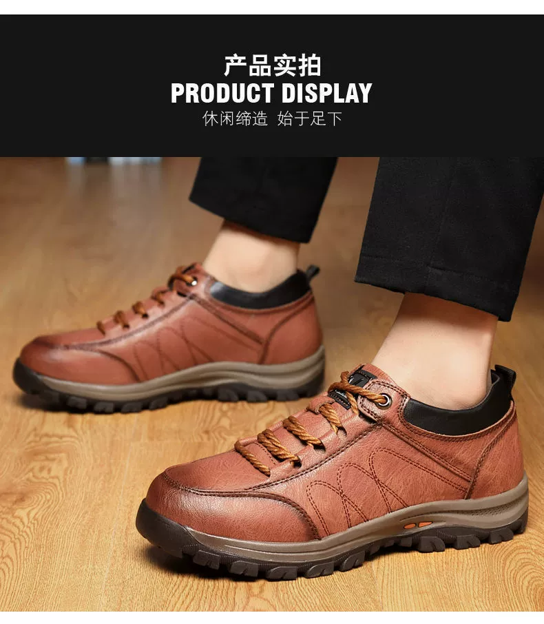 Осенне-зимние мужские кожаные кроссовки с вельветовым утеплителем, водонепроницаемые уличные походные ботинки, Рабочая обувь для вождения