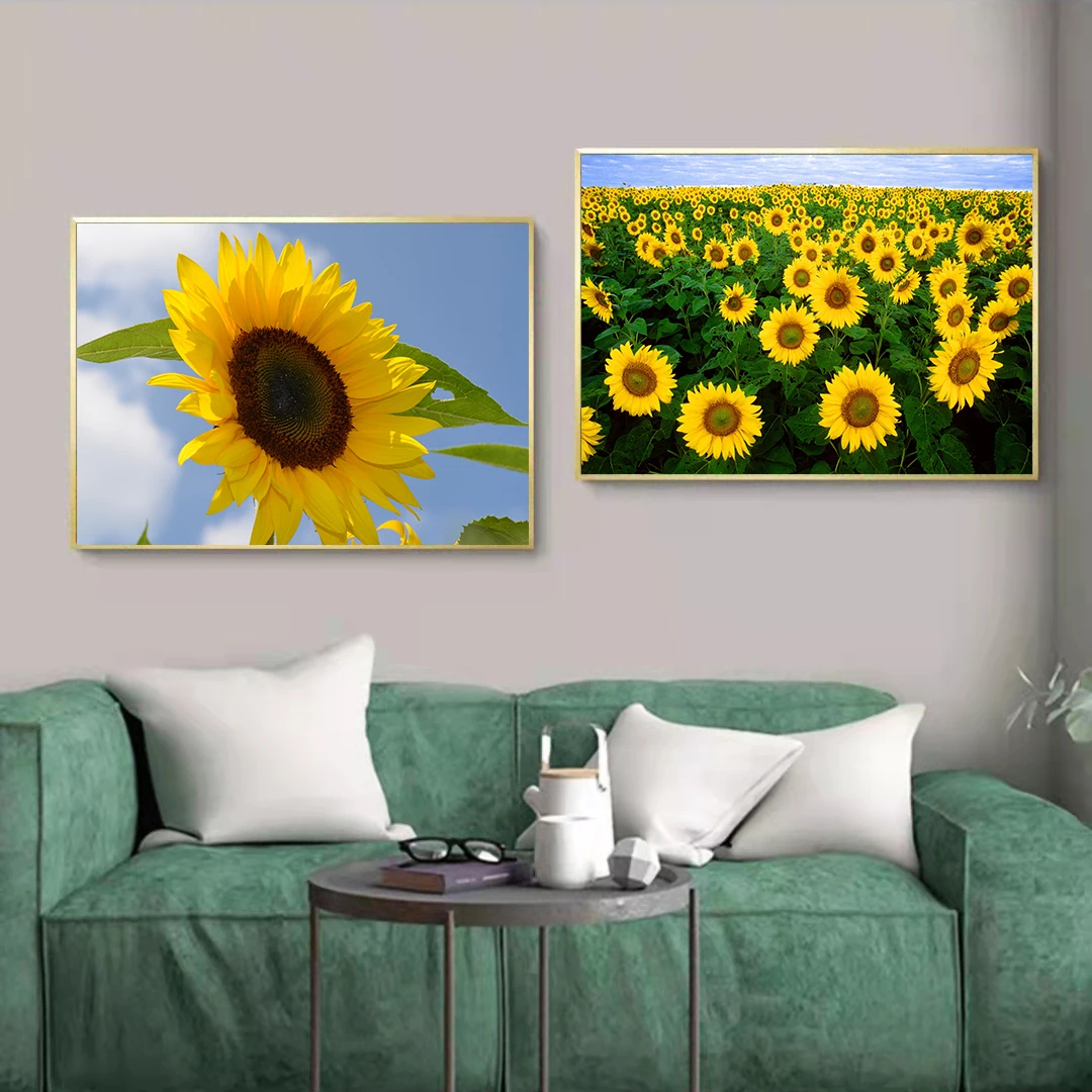 Скандинавский пейзаж, картина маслом, Подсолнухи, холст, художественный печатный плакат, Цветочное поле, картины для современного украшения гостиной