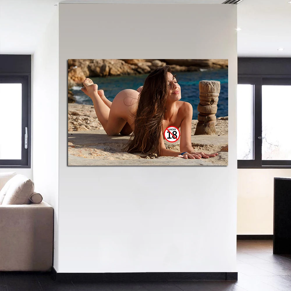 Плакат на холсте с изображением брюнетки обнаженной девушки на пляже, тканевый принт, настенные картины для декора гостиной