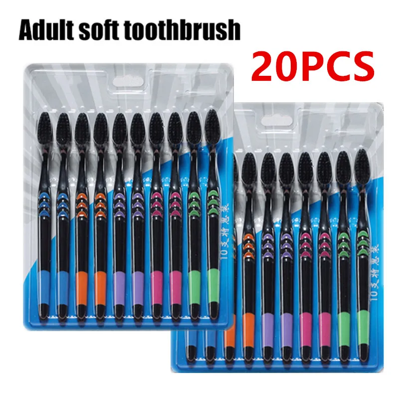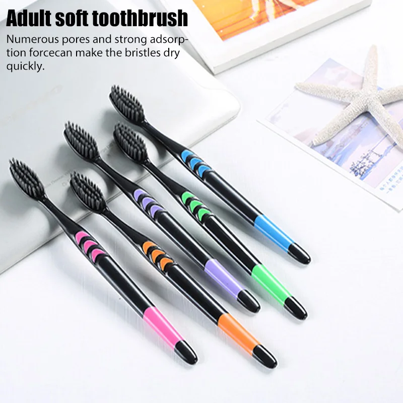 2010 шт. Зубная щетка с мягкой щетиной для взрослых, бамбуковый уголь, бытовая тонкая шерсть, антибактериальные, для мужчин и женщин, семейный уход за полостью рта