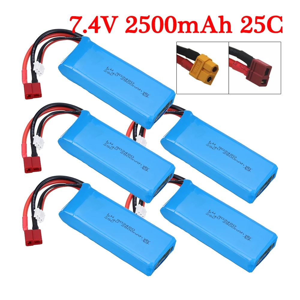 2s 7,4 V 2500mAh для Wltoys 144001 автомобиль Улучшенная литий-полимерная батарея T разъем для Wltoys 124018 12423 12428 RC Racing Car Battery Parts