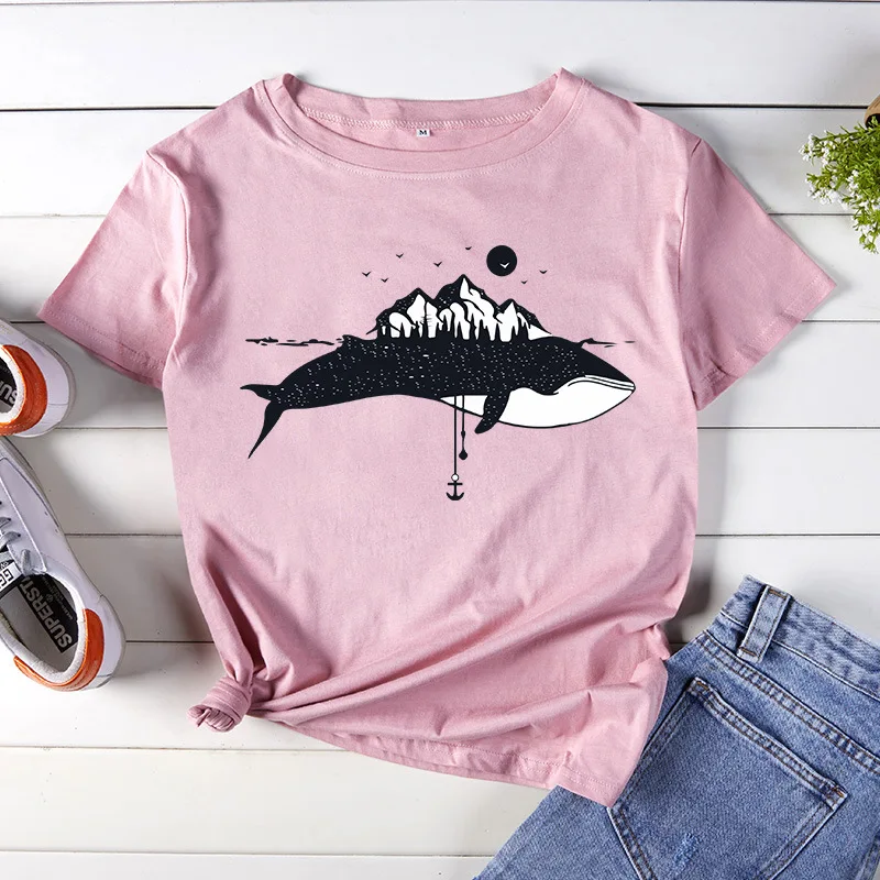 Футболка женская хлопковая с коротким рукавом, Милая с принтом альп...