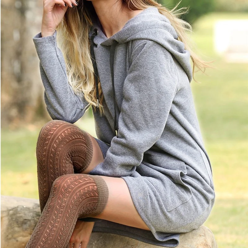 Женское повседневное длинное платье с капюшоном, осенне-зимние свит...
