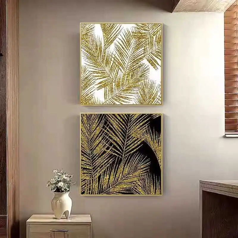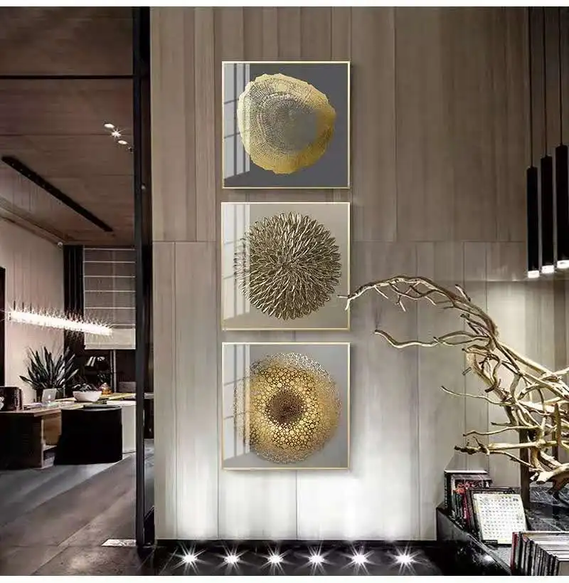 Светильник я Роскошная золотая картина для украшения гостиной, квадратная подвесная картина для спальни, столовой, фреска из золотой фольги