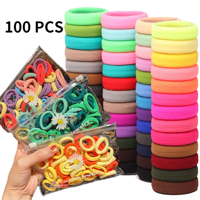 100 шт.набор, цветные эластичные резинки для волос из полиэстера
