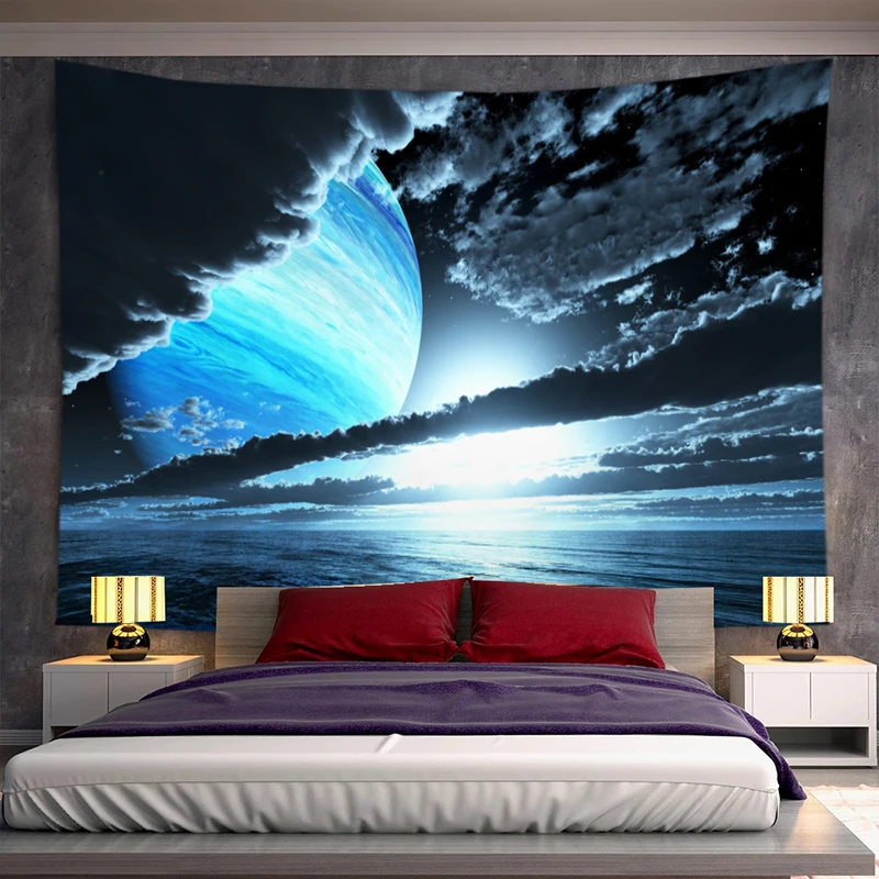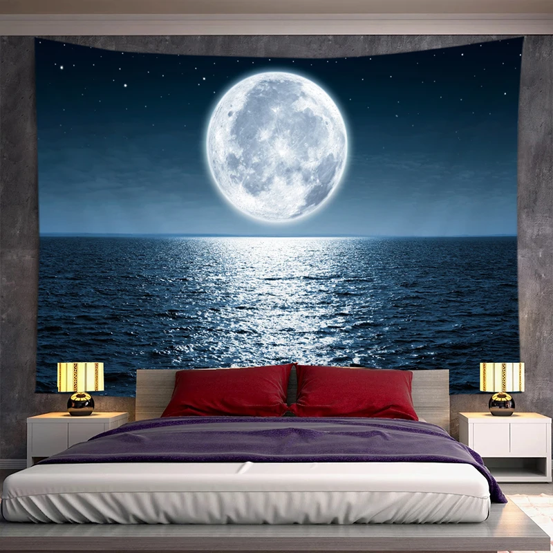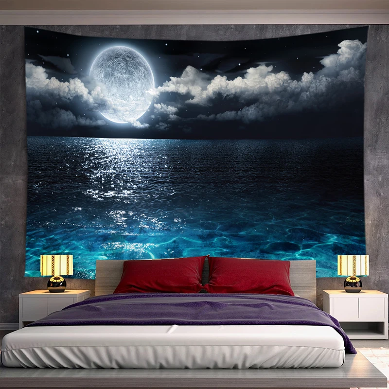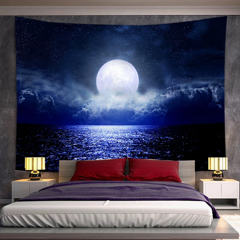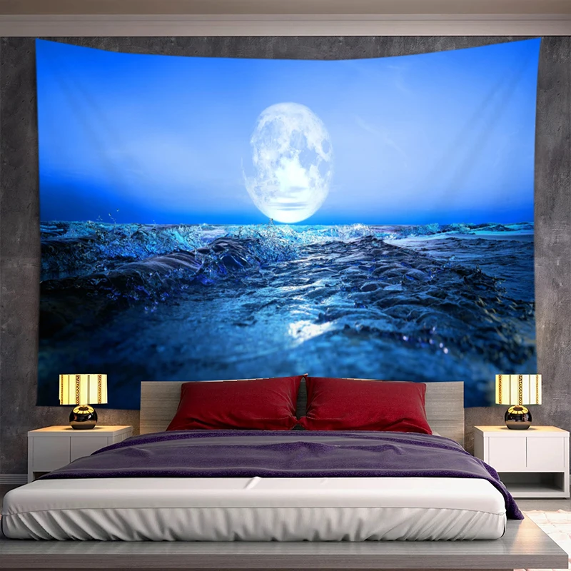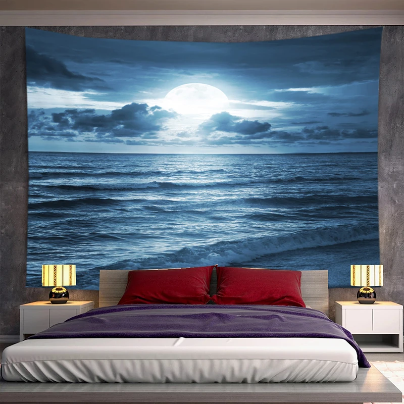 Морской гобелен с Луной для спальни гостиной фон подвесная настенная ткань природный пейзаж Голубое озеро настенный гобелен Римский Декор