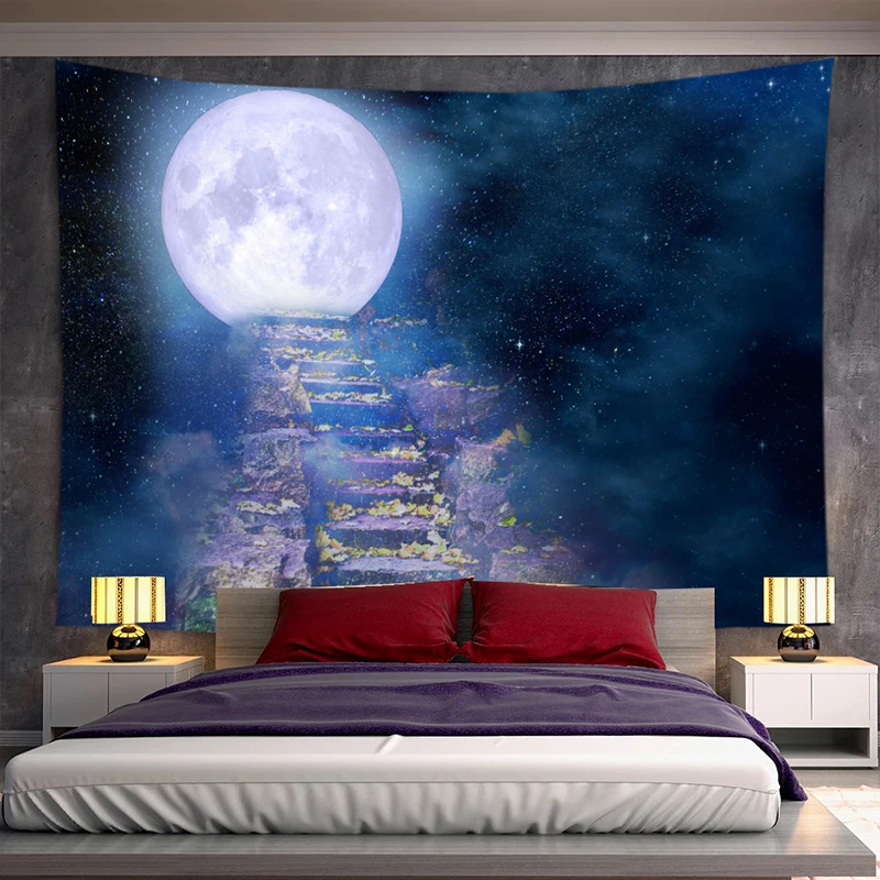 Море гобелен с Луной для спальни гостиной фон на стену ткань природный пейзаж Голубое озеро настенный гобелен Римский Декор