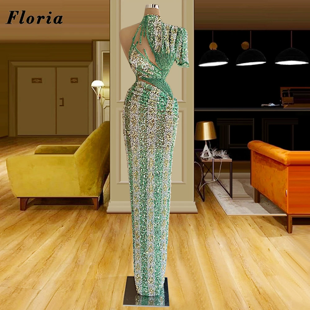 Зеленые платья для выпускного Floria с бисером, 2021, прозрачная пляжная вечерняя одежда, женское арабское платье Дубая для выпускного вечера, Пышное Платье