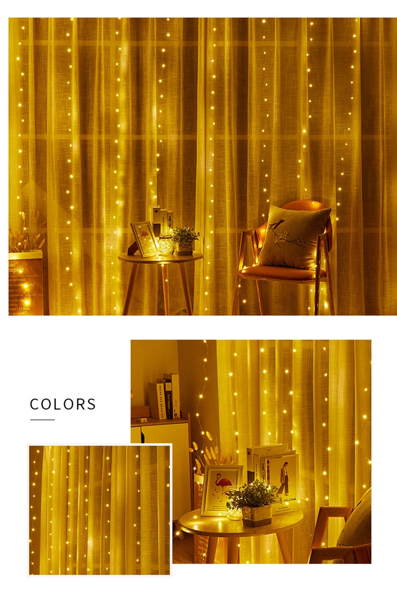 Рождественская светильник ная Гирлянда-занавес, 3 х3 мПреврати белый свет в теплый свет