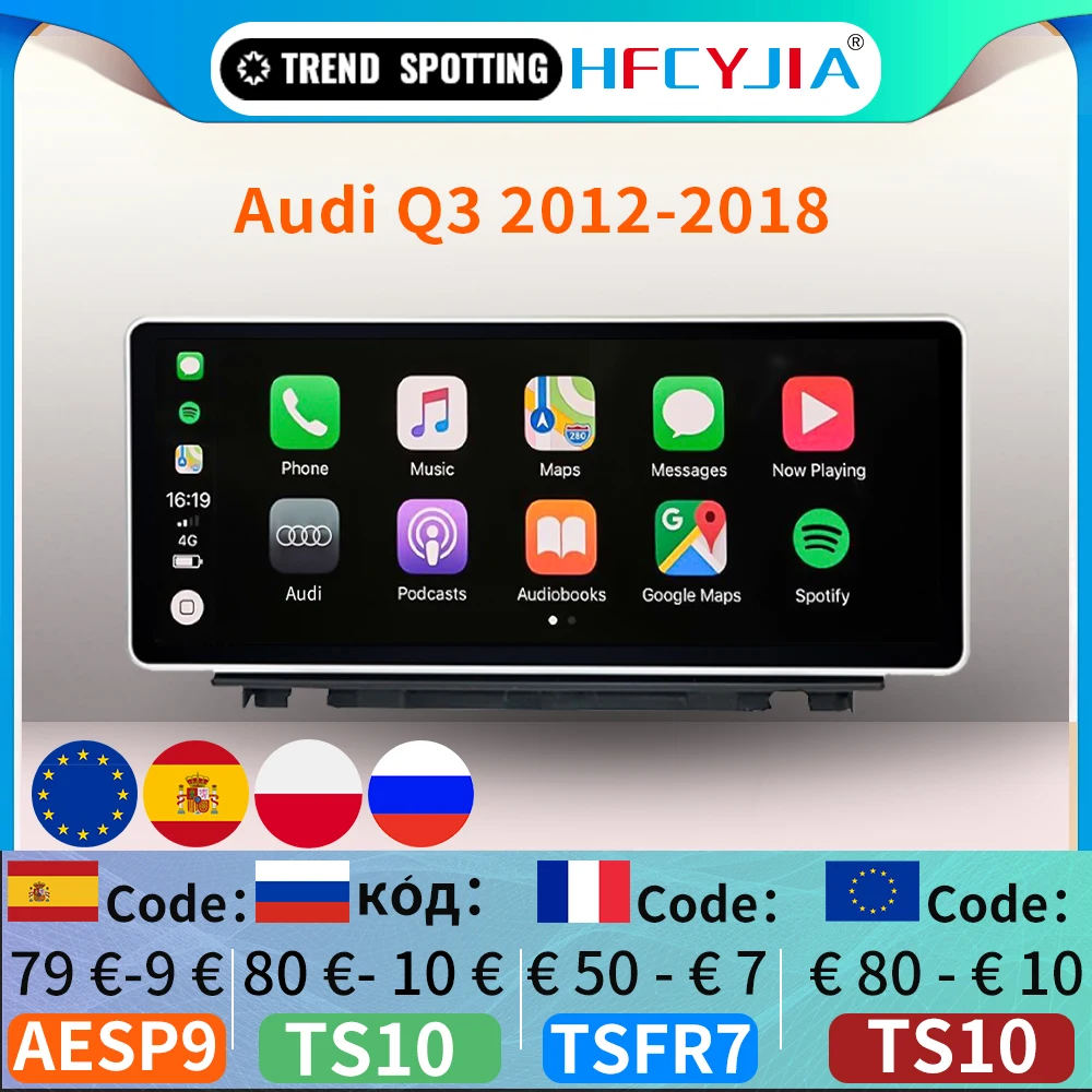 Автомобильная Мультимедийная стереосистема, 8 ядер, 10,25 дюйма, для Audi Q3 2012-2018 BT NAVI Google WIFI радио Carplay GPS-приемник SIM 4G LTE
