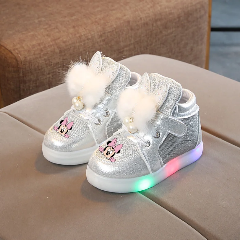 Детская светодиодная обувь Минни Маус для маленьких девочек, легкие светящиеся Детские кроссовки, спортивная обувь для девочек со светодиодной подсветкой, Дисней