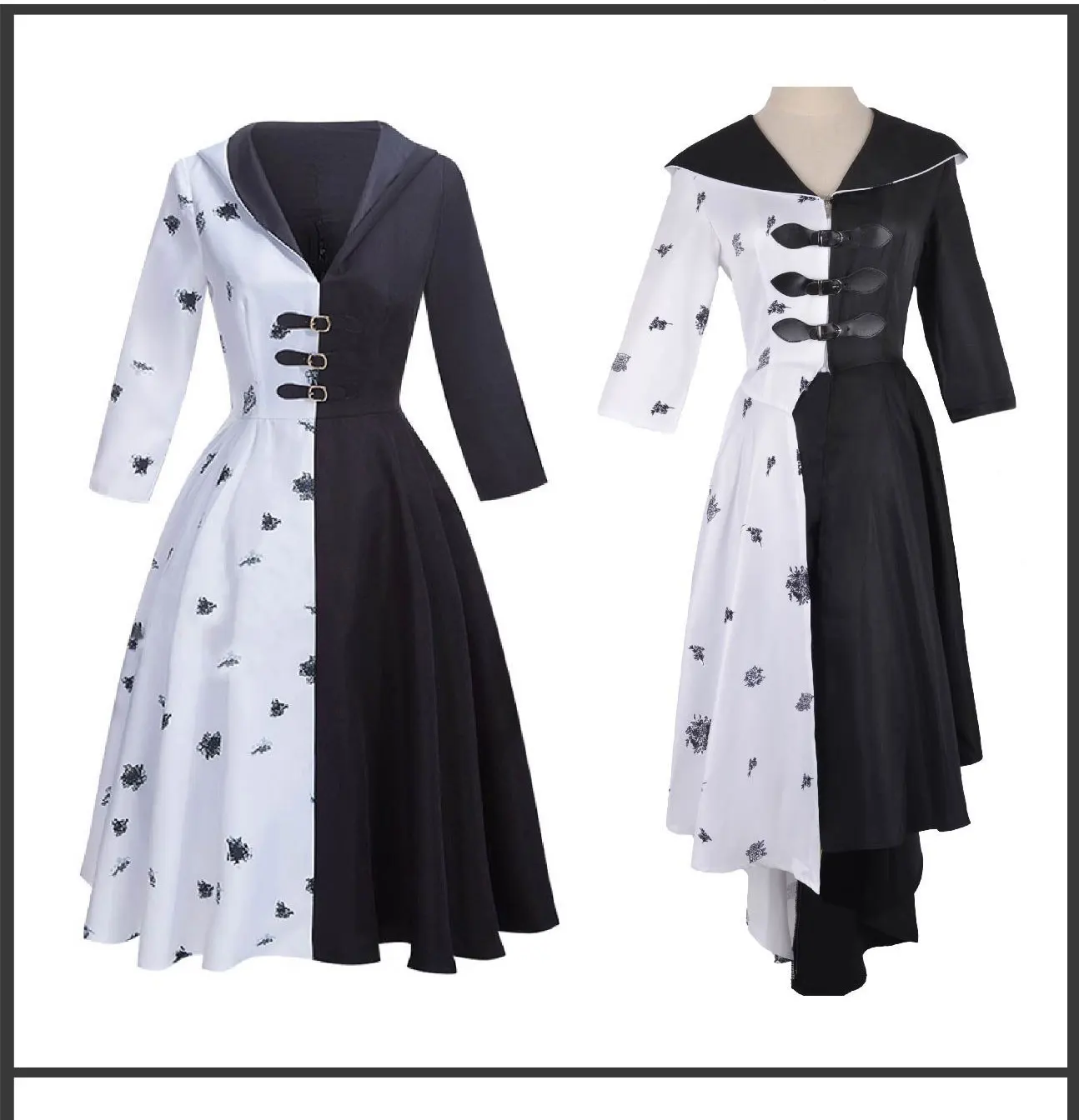 2021 новый фильм злые мадам Круэлла искусственное платье черно-бело...