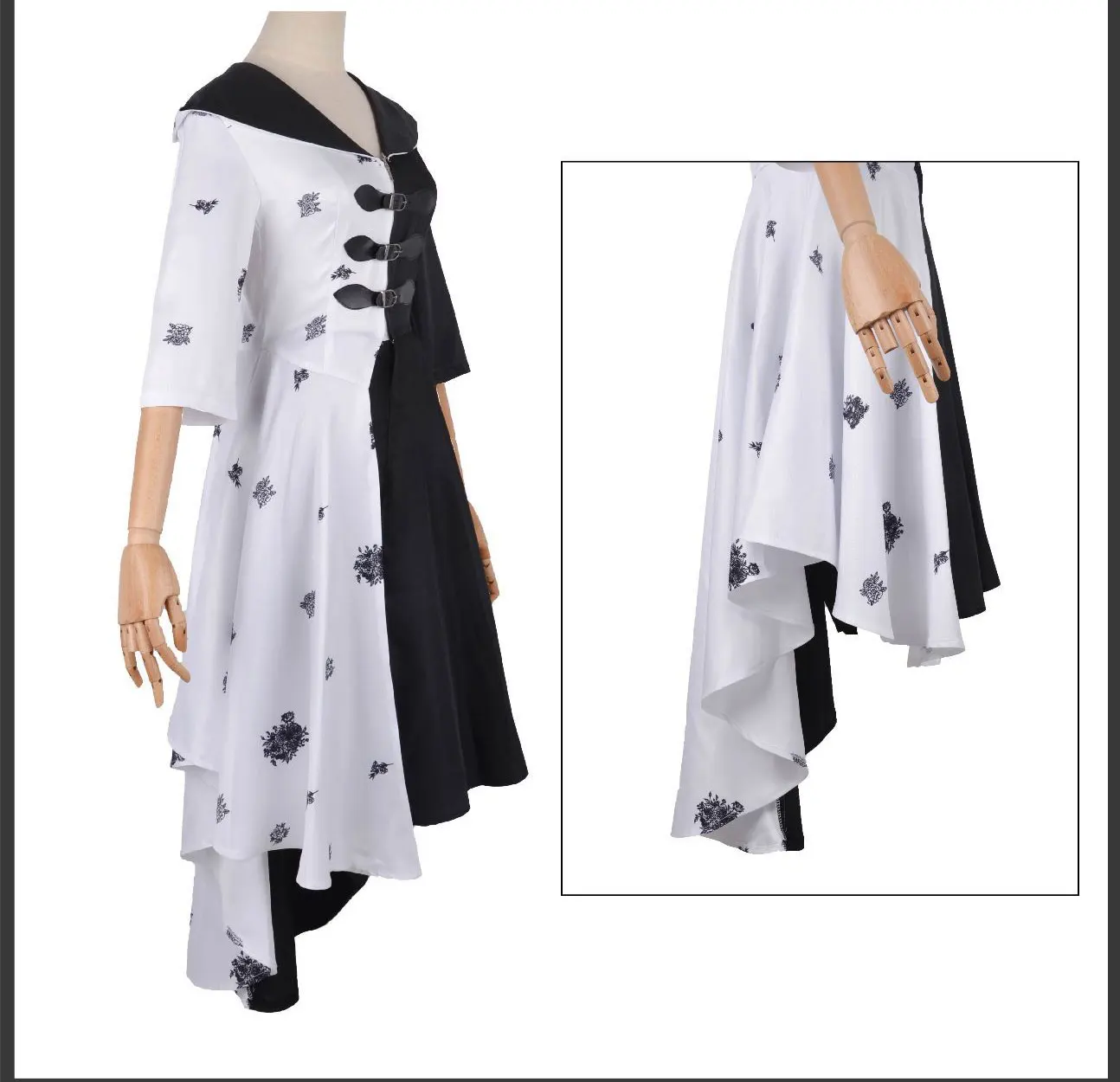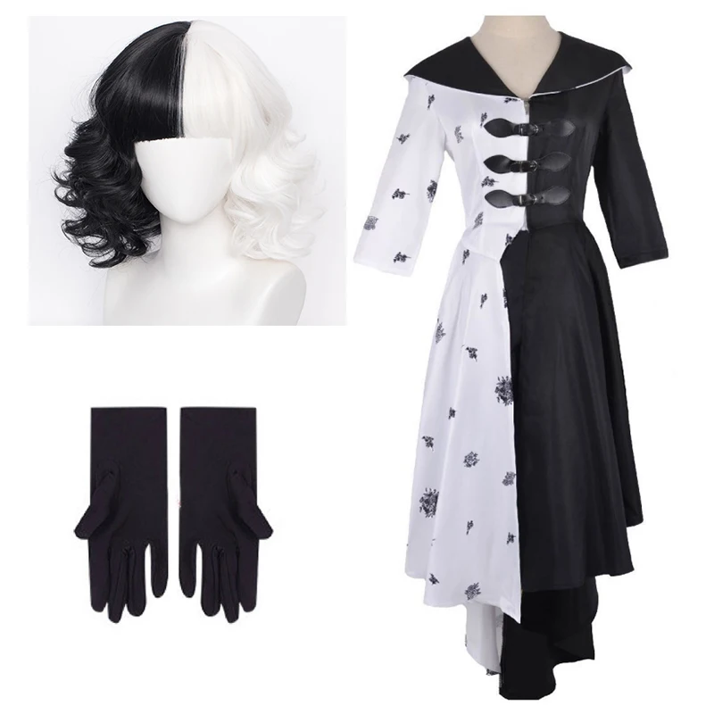 Платье для хэллоуивечерние, аниме Cruella De Vil, косплей костюм из фильма, женское платье для взрослых, черное, белое платье горничной, перчатки, женское платье