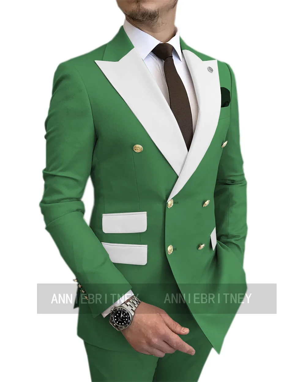 Мужской пиджак и брюки небесно-голубого цвета, облегающий пиджак для жениха, красного цвета, двубортный блейзер для вечерние ринки или свадьбы, комплект из 2 предметов