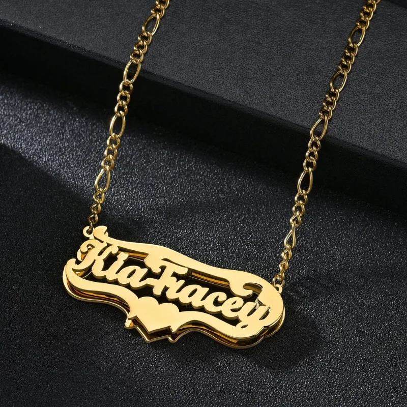 Новинка 2021, стильное ожерелье на заказ из нержавеющей стали, персонализированная табличка, цепь Фигаро, двойное покрытие, значок, драгоценности