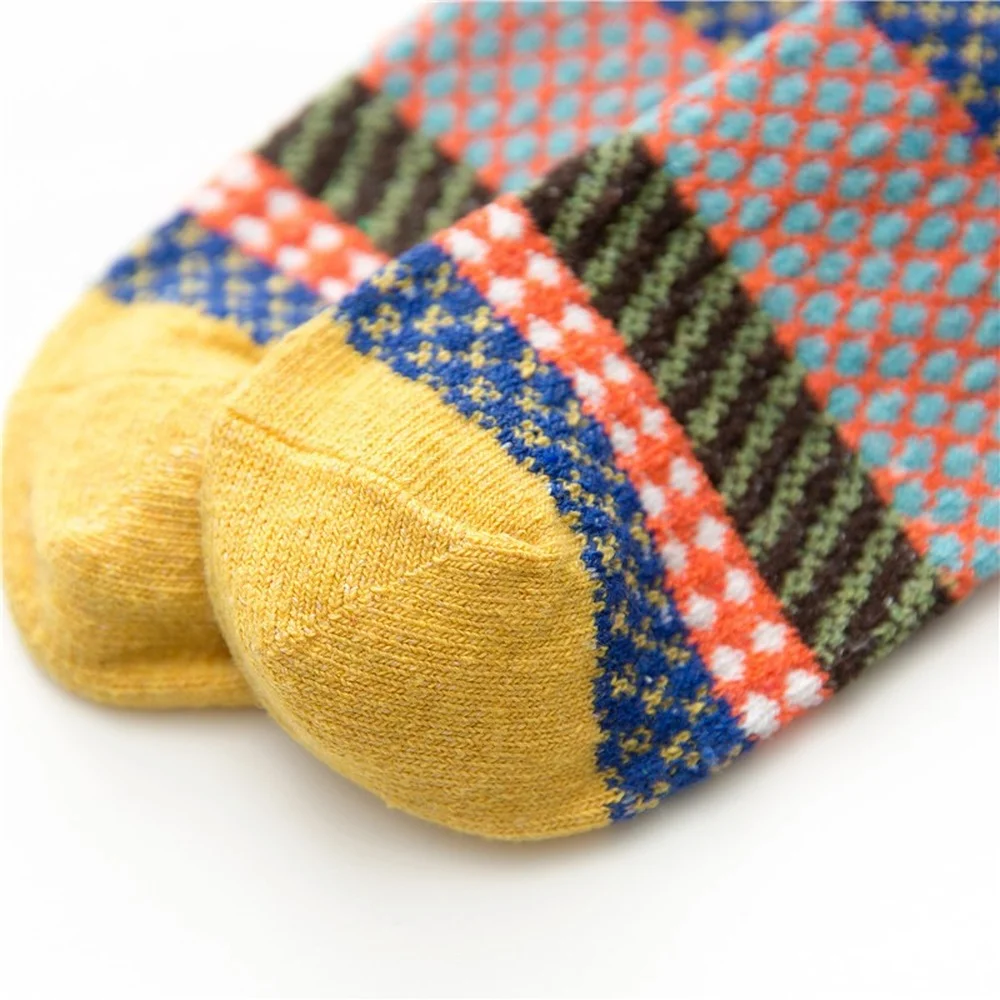 Носки женские из кроличьей шерсти, с вертикальными полосками, Осень-зима, 5 пар, EU35-40