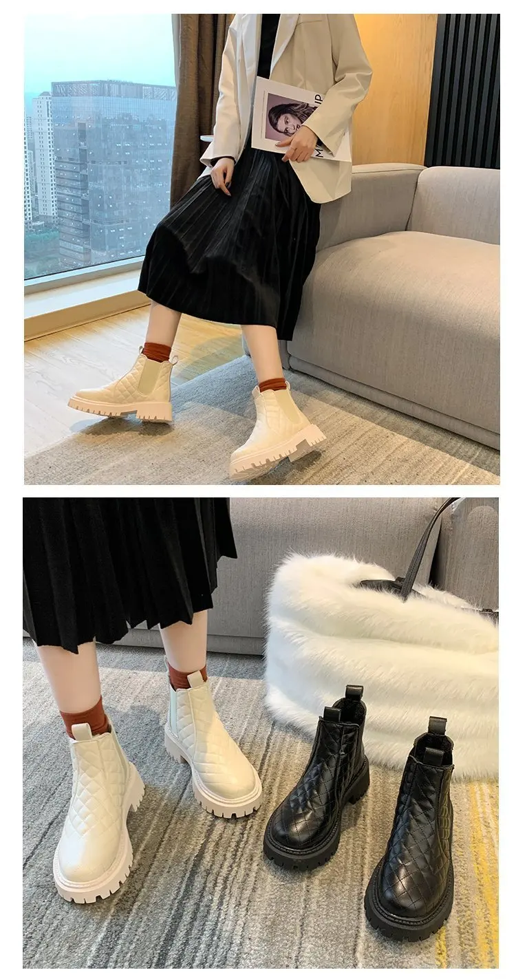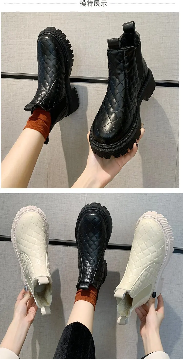 Ботинки мартинсы женские нескользящие, теплые короткие, с бархатной подкладкой, роскошные дизайнерские, бежевые, черные