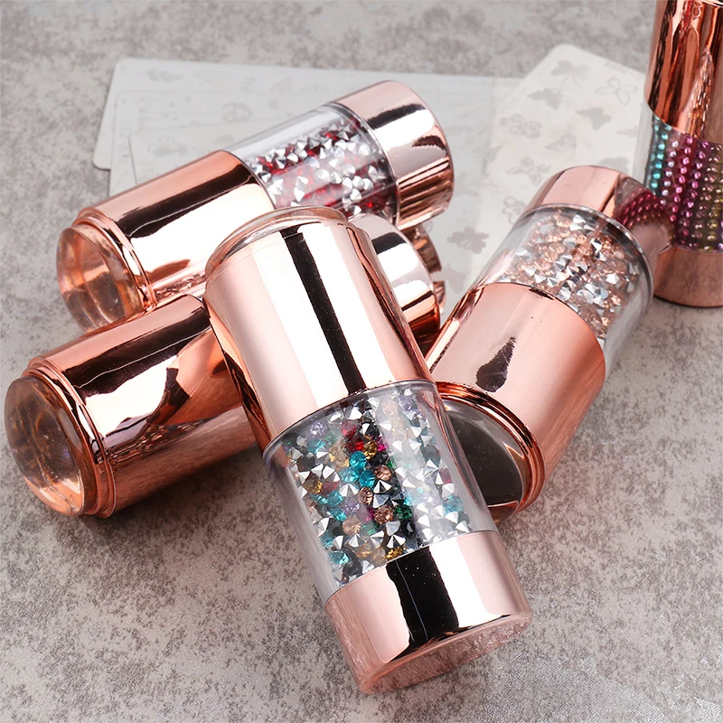 100% новый и высокое качествоНовый дизайн ногтей с двойной головкой,Ручка цвета шампанского + стразы, ручка высокого качестваЛегко переносить полировальная пластина для стемпинга для нейл-артаКоличество: 1 шт. штамп + 2 шт. скребок (случайный)Цвет: смешанный цвет/белый/красный/шампань