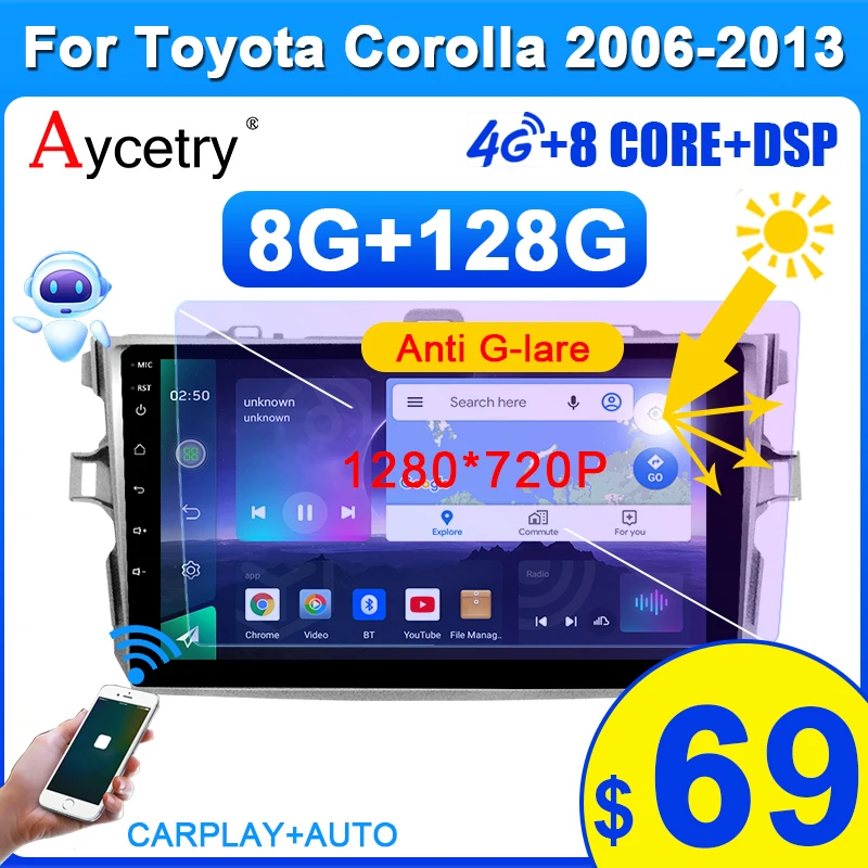 Автомагнитола 2 din, Android 10, для Toyota Corolla E140, E150, 2006-2013, GPS, bluetooth, мультимедиа