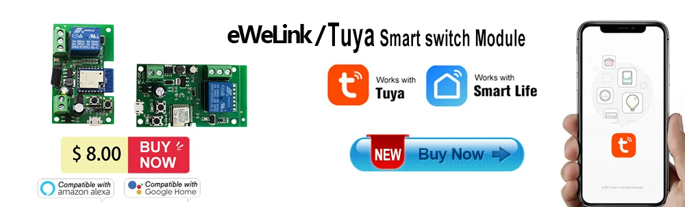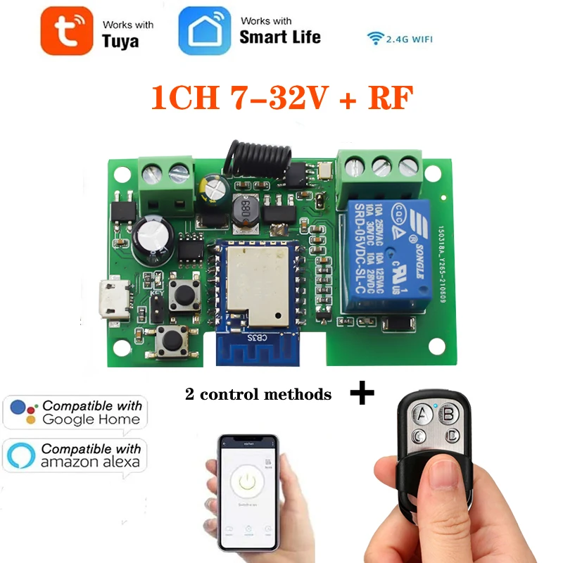 Модуль переключателя Wi-Fi Tuya 1-канальный, управление через приложение Smart life для умного дома, прерыватель для домашней страницы Alexa Google