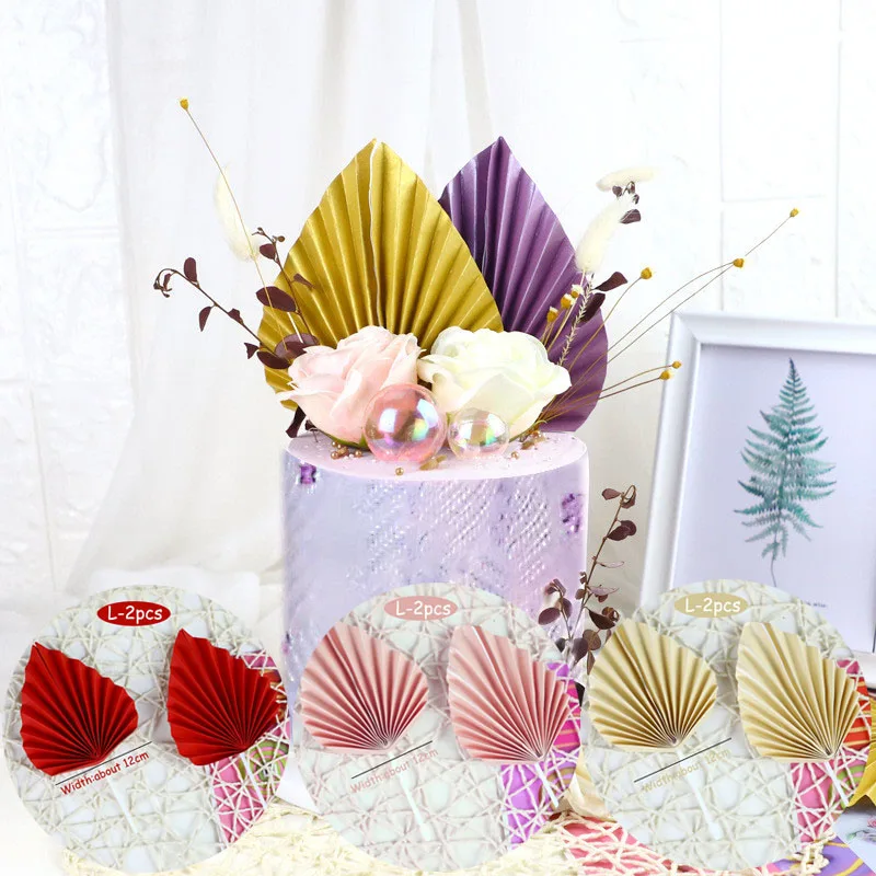 2 шт./лот бумажный вентилятор для торта, золотой пальмовый лист, вечерние украшения для дня рождения, свадьбы, украшения торта, украшение для торта с флагом на день рождения