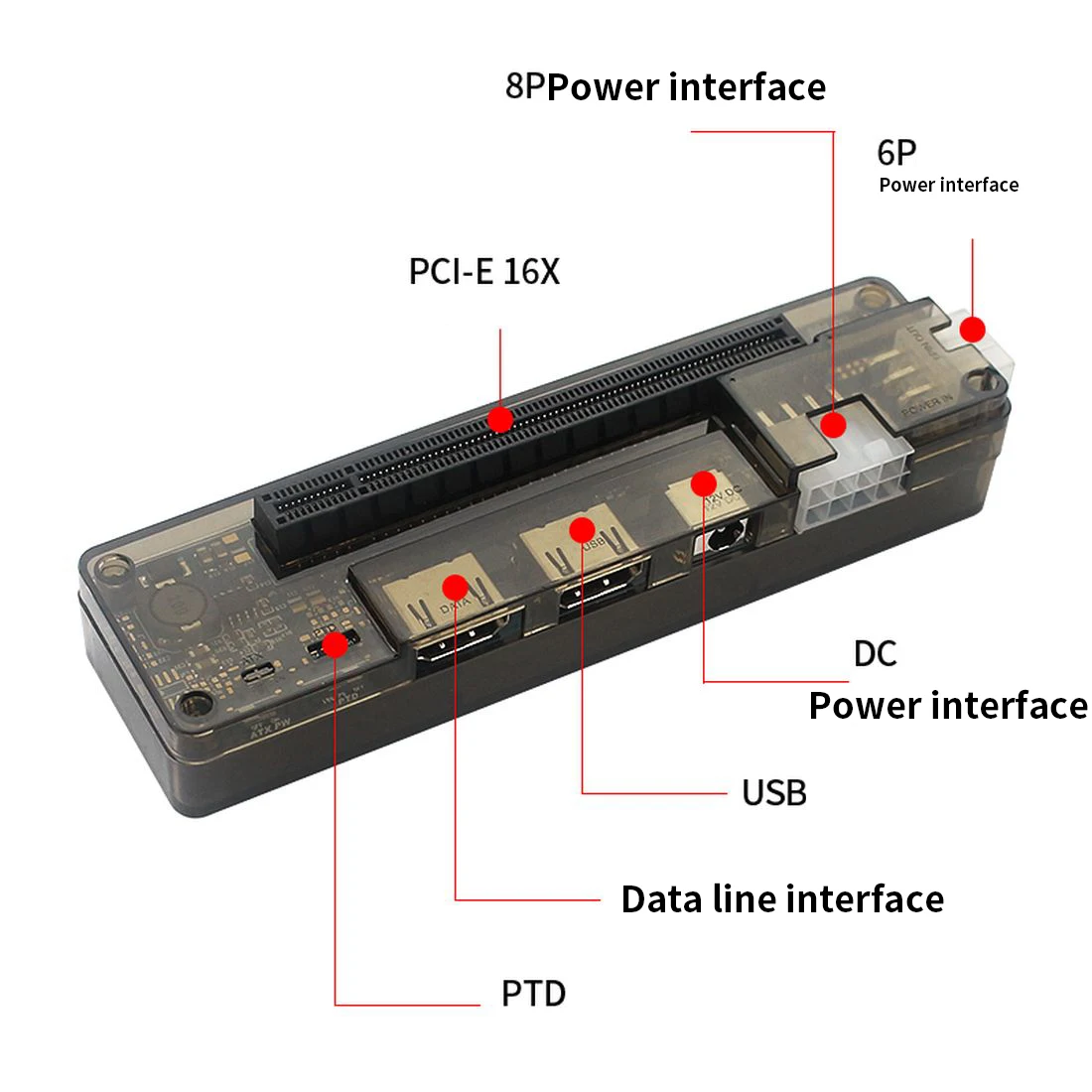 4. 6-контактный интерфейс для подключения питания видеокарты; 8-контактный интерфейс для подключения источника питания EXP GDC.