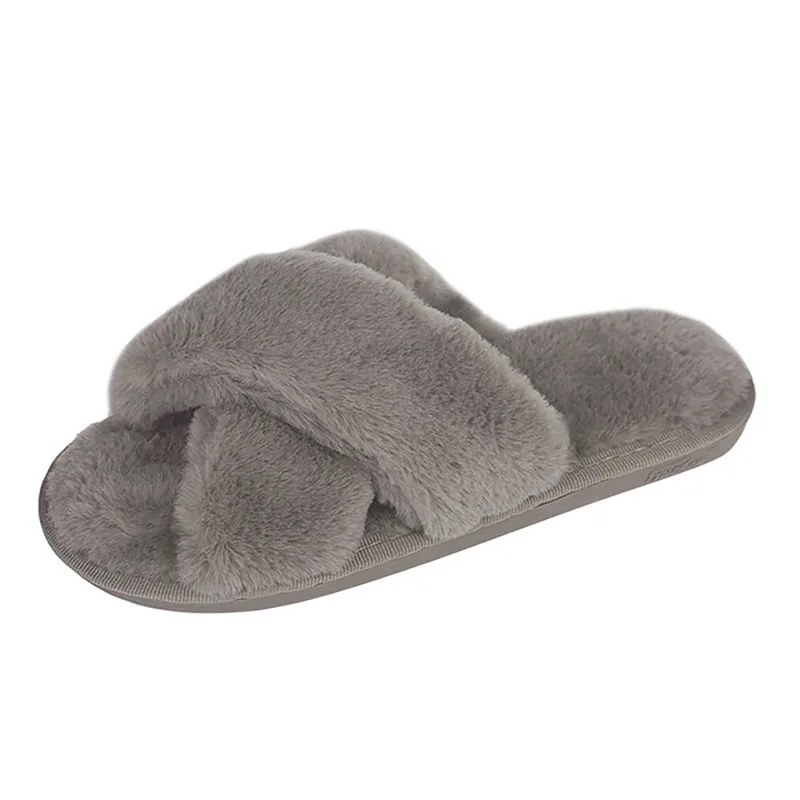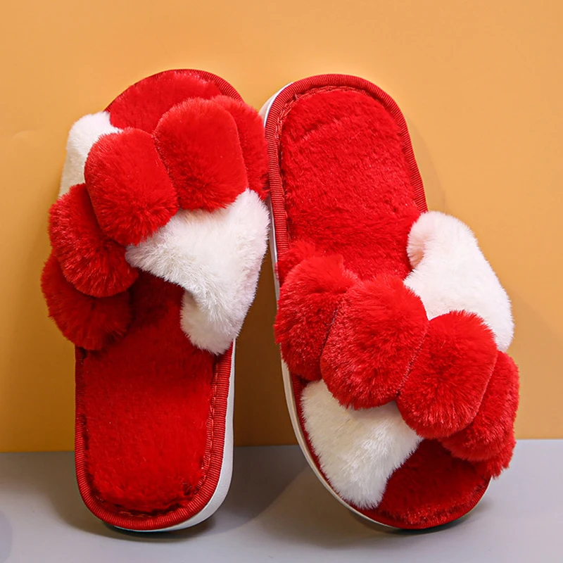 Зимние тапочки для девочек, женская обувь, плюшевые туфли с открыты...