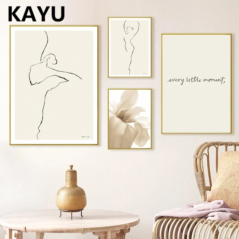 Богемный стиль ботаническая живопись на холсте Абстрактная линия пе...