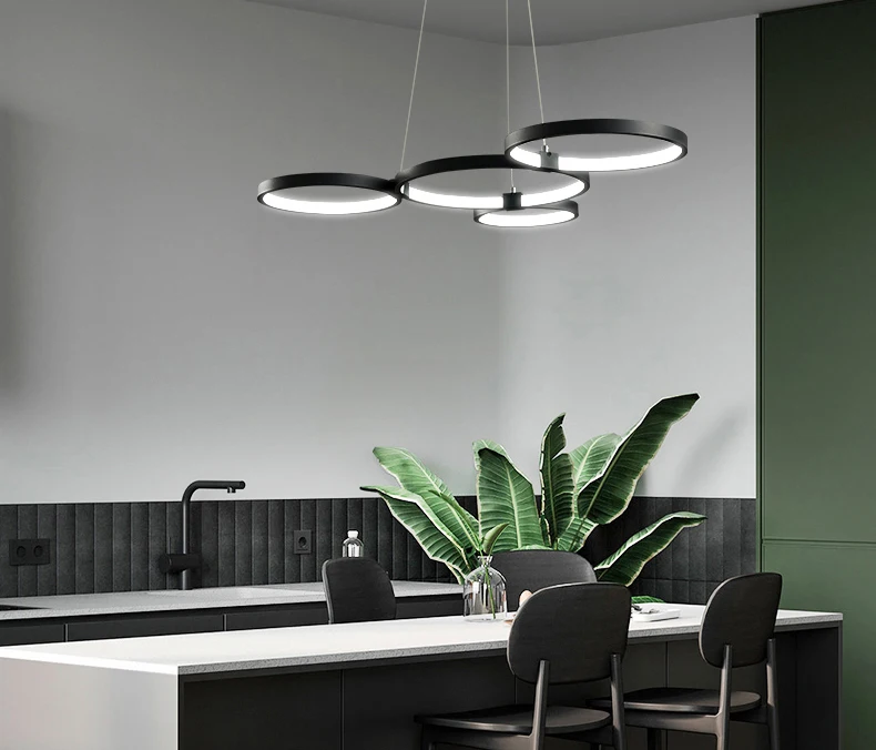 Современная светодиодная люстра черного цвета, Подвесная лампа, современная светодиодная люстра с регулируемой яркостью для гостиной, столовой, кухни, люстра
