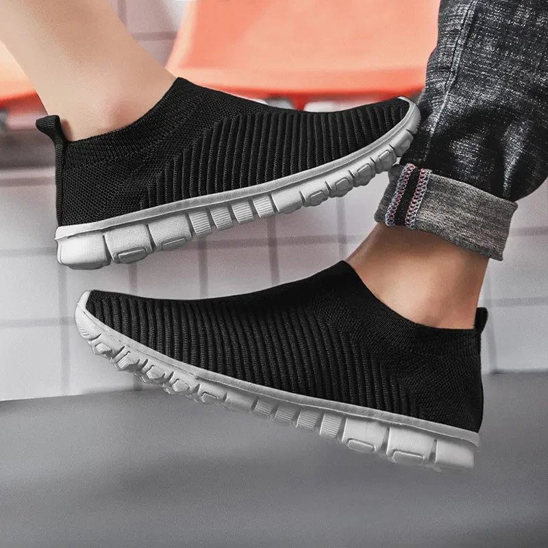 Кроссовки без шнуровки для ходьбы, удобная дышащая мягкая эластичная ткань, Вулканизированная подошва, модная обувь для мужчин и женщин