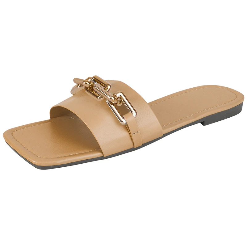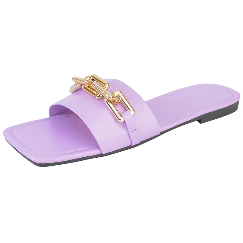 Шлепанцы женские прозрачные на плоской подошве, пляжные сандалии с цепочкой, квадратный носок, сланцы, роскошная модель Лето 2021