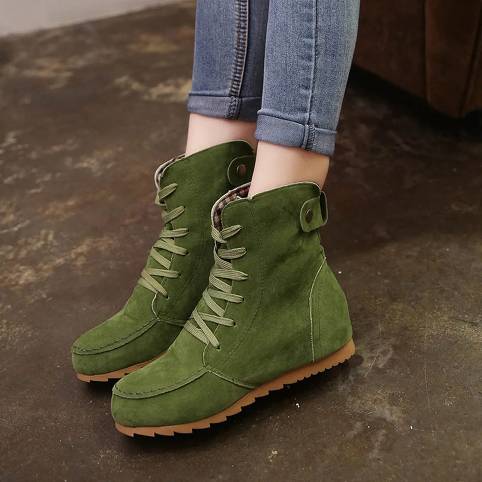 Ботинки женские, на плоской подошве, со шнуровкой, с острым носком
