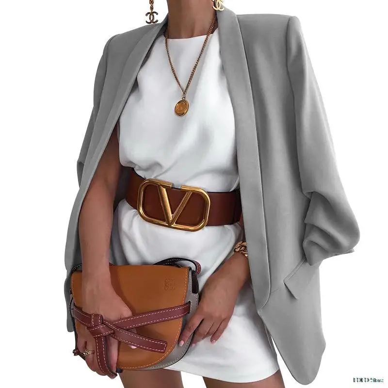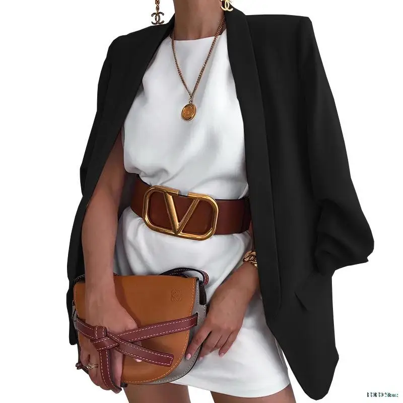Женский блейзер 2021, простое однотонное пальто, топы, Женский блейзер с длинным рукавом, облегающая Офисная Женская Блейзер большого размера
