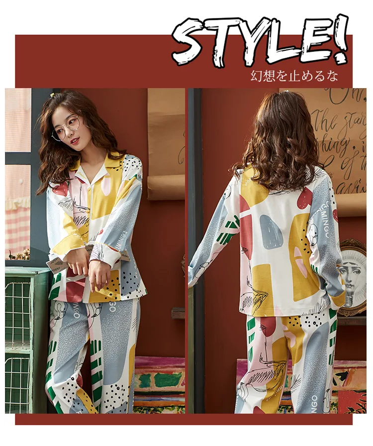 2 шт., женские пижамы с отложным воротником, из натурального хлопка