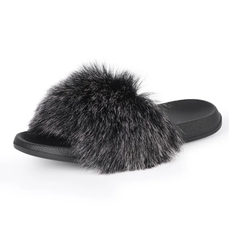 Шлепанцы женские домашние из искусственного меха, пушистые, плоская подошва, сланцы, удобная меховая обувь для дома, симпатичные зимние тапочки, комнатные шлепанцы