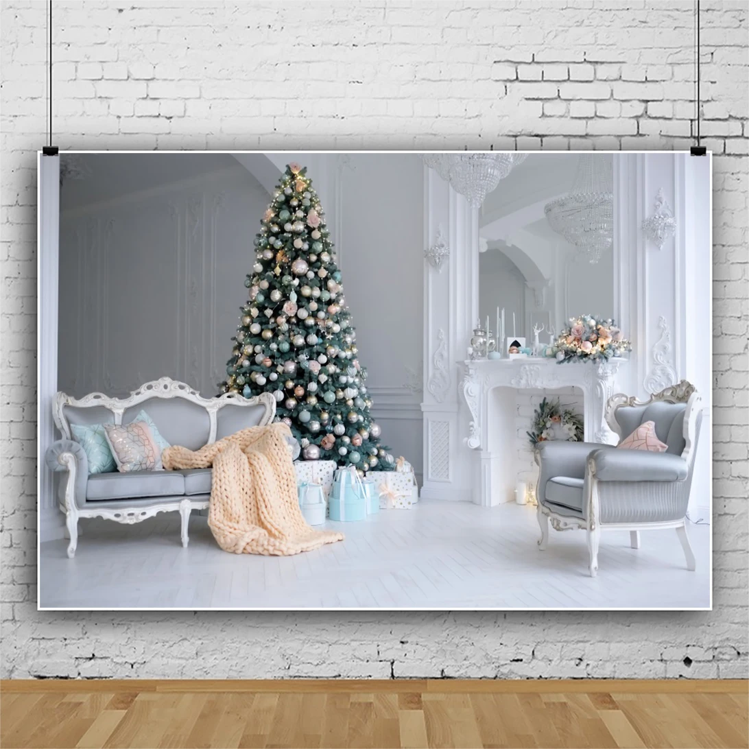 Рождественский фон для фотосъемки серая стена Дерево вечеривечерние подарок Диван Интерьер интерьер фотостудия фотосессия