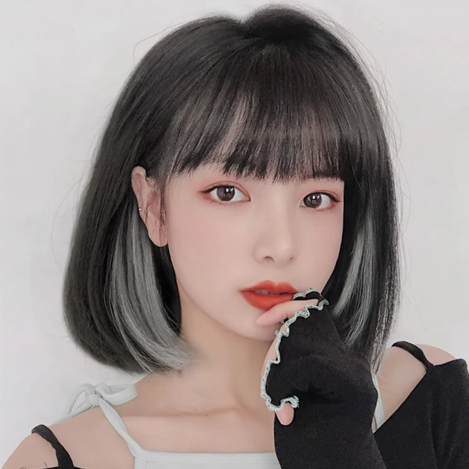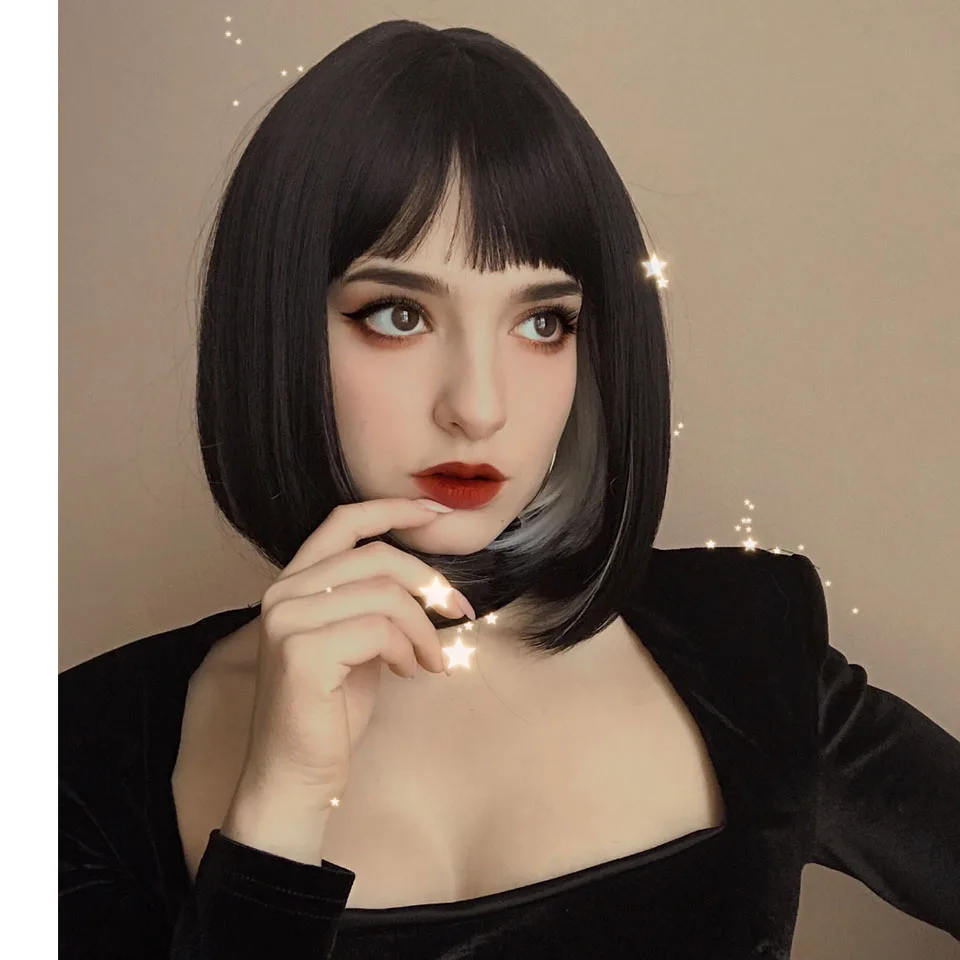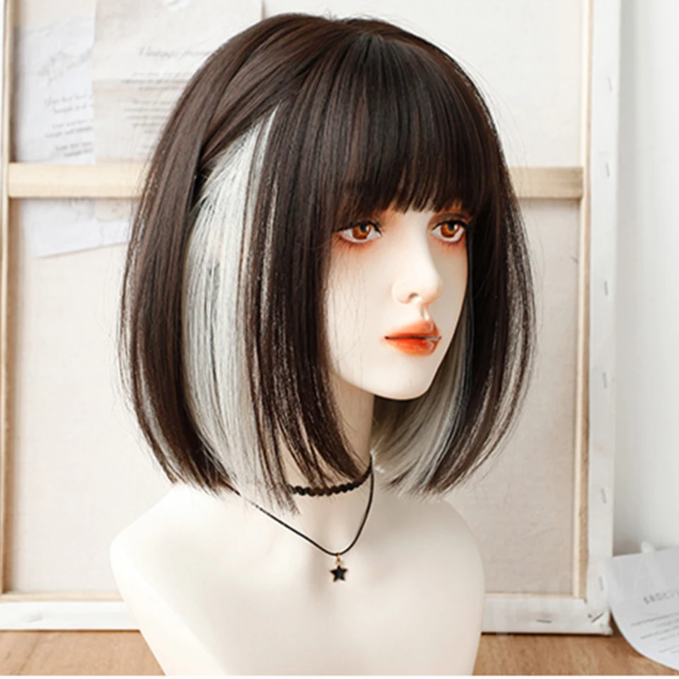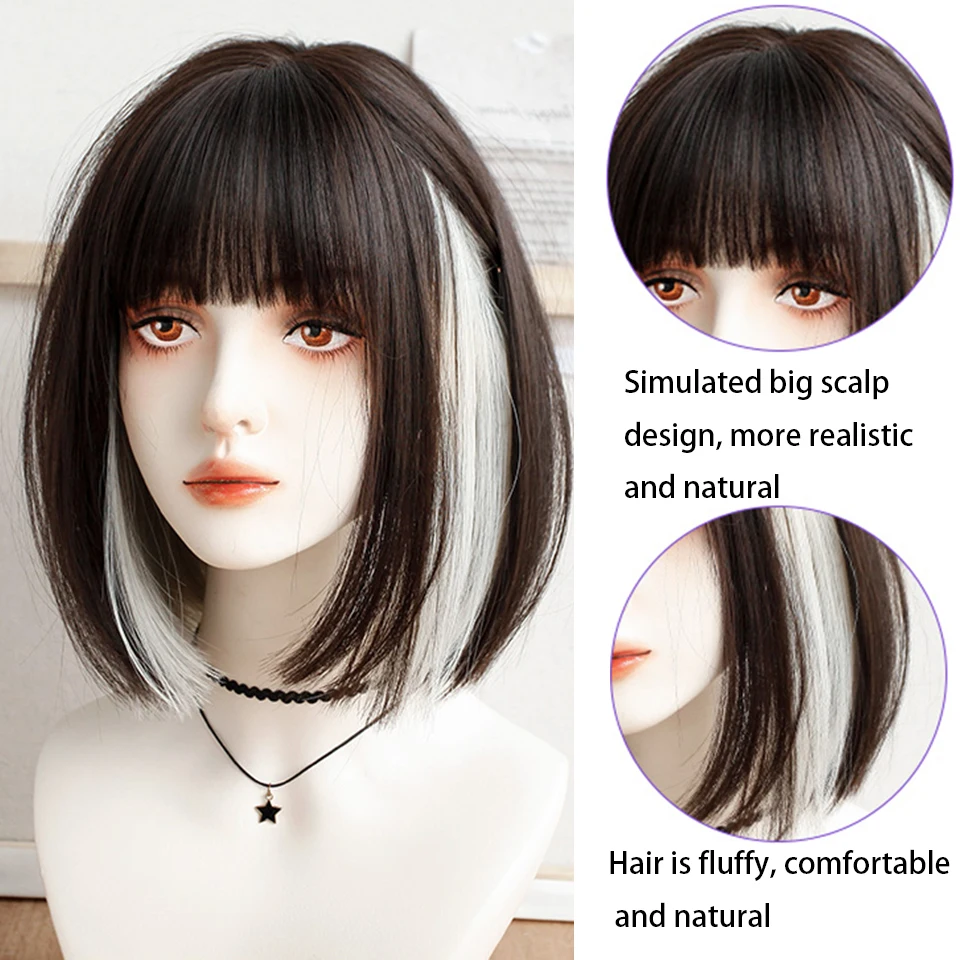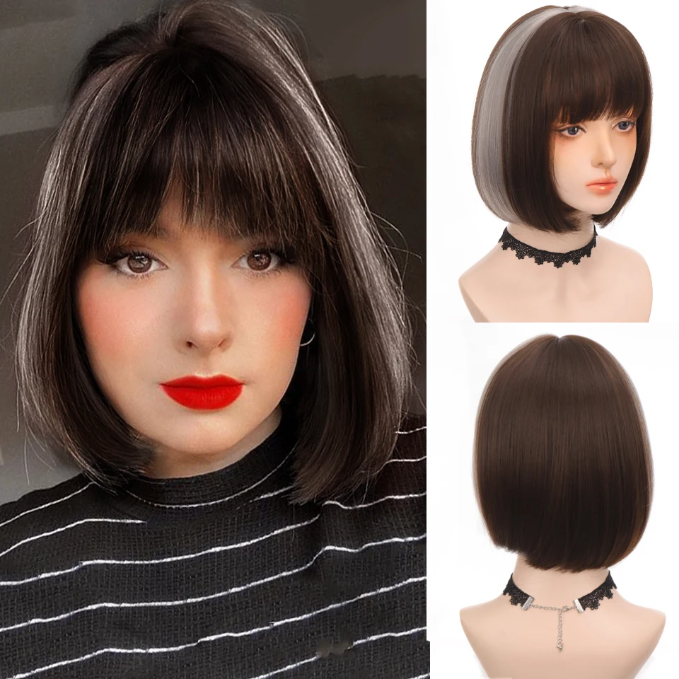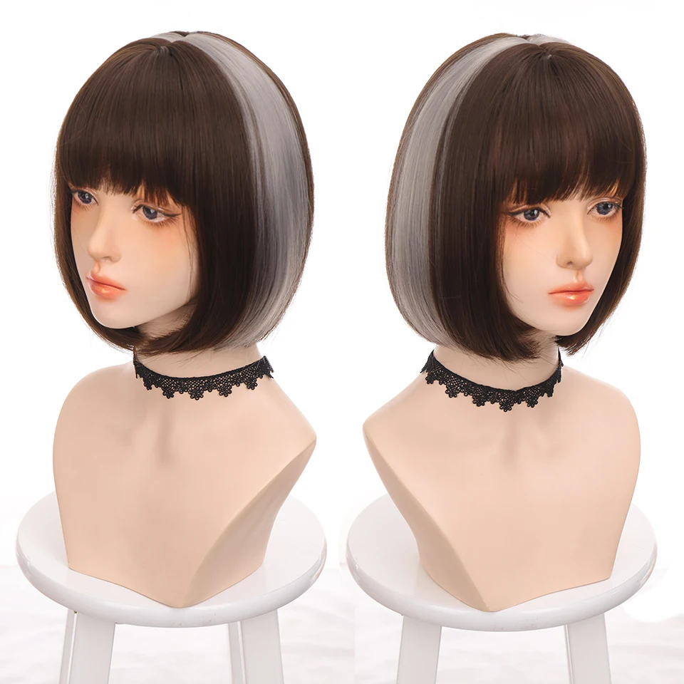 Парик HOUYAN, короткие прямые волосы, каштановые, серебристые, розовые, черные, термостойкие Вечерние