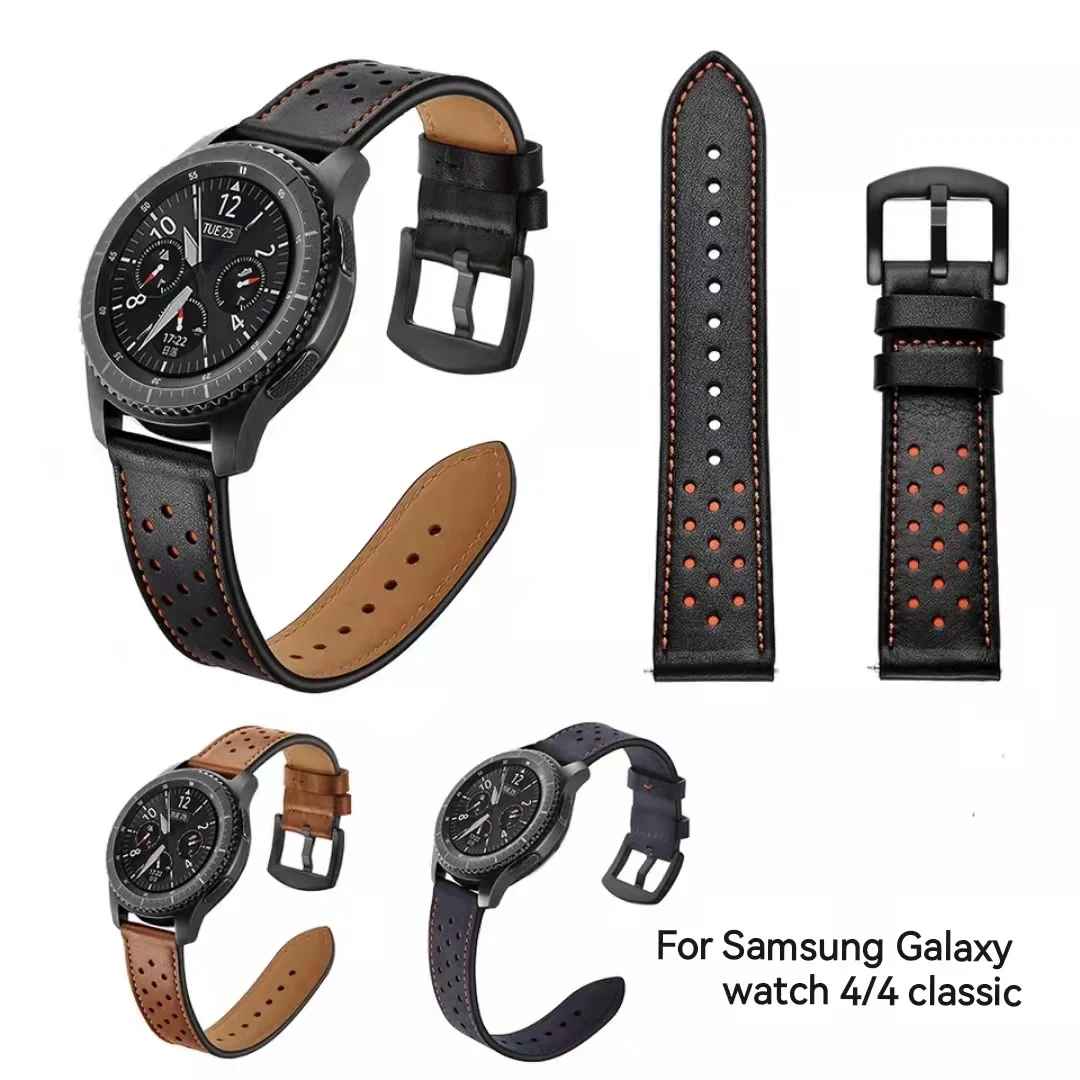 Ремешок кожаный для Samsung Galaxy watch 4 40 мм 44 мм, Воздухопроницаемый браслет, Аксессуары для Samsung Galaxy watch 4 classic 42 мм 46 мм