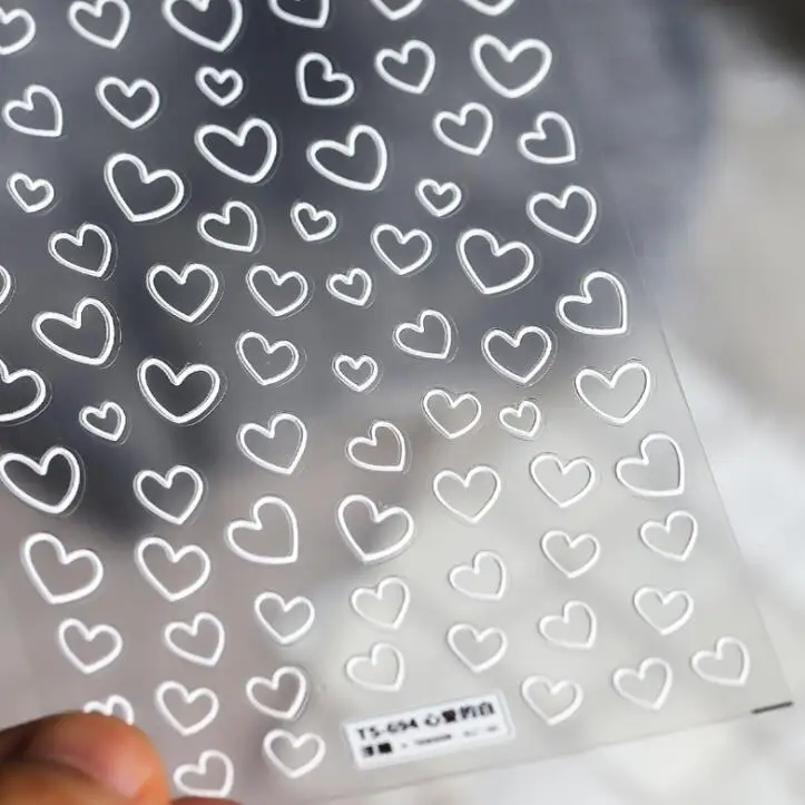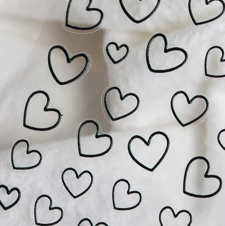 Милые черно-белые наклейки в форме сердца для дизайна ногтей 3D дизайн сделай сам аксессуары для ногтей Акриловые Украшения для маникюра