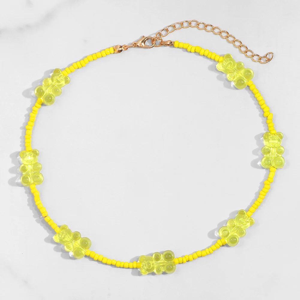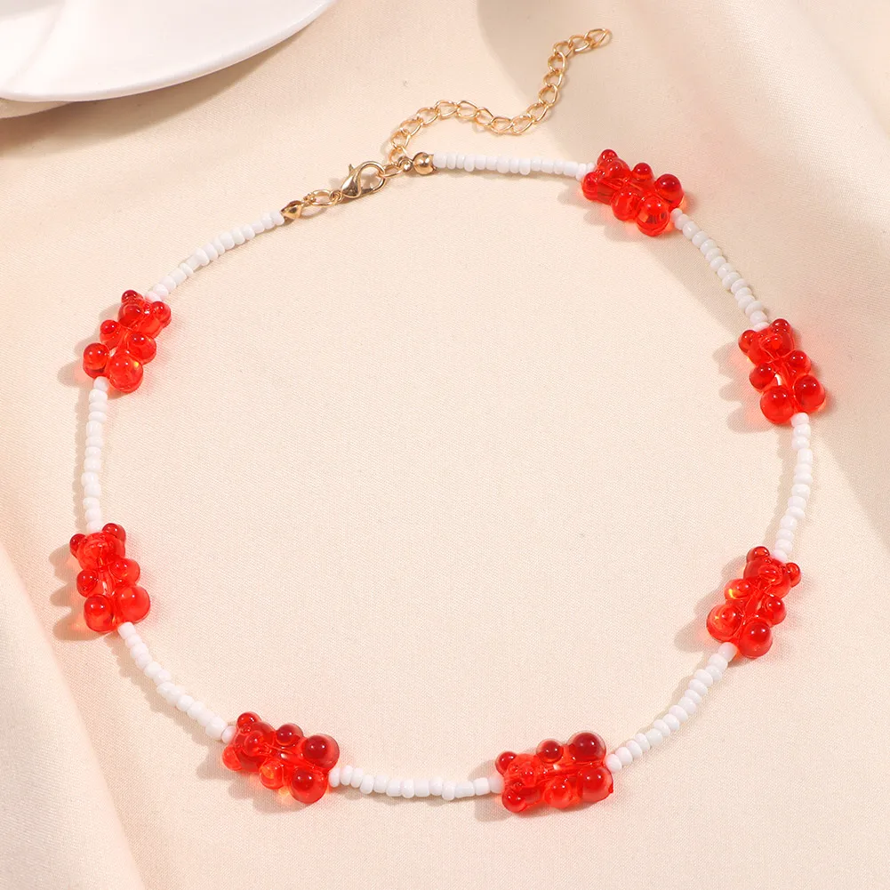 Радужные цветные бусины, жевательные смолы, ожерелья медведь, для женщин, корейские девушки, ручной работы, мультяшный медведь, ожерелье из бисера, модные праздничные ювелирные изделия