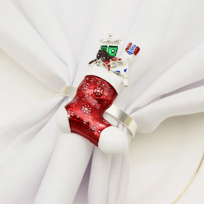 Кольцо с пряжкой для рождественских салфеток, бант, гирлянда с узлом, свадебное украшение для стола, кольцо для салфеток с рождественской елкой и оленем