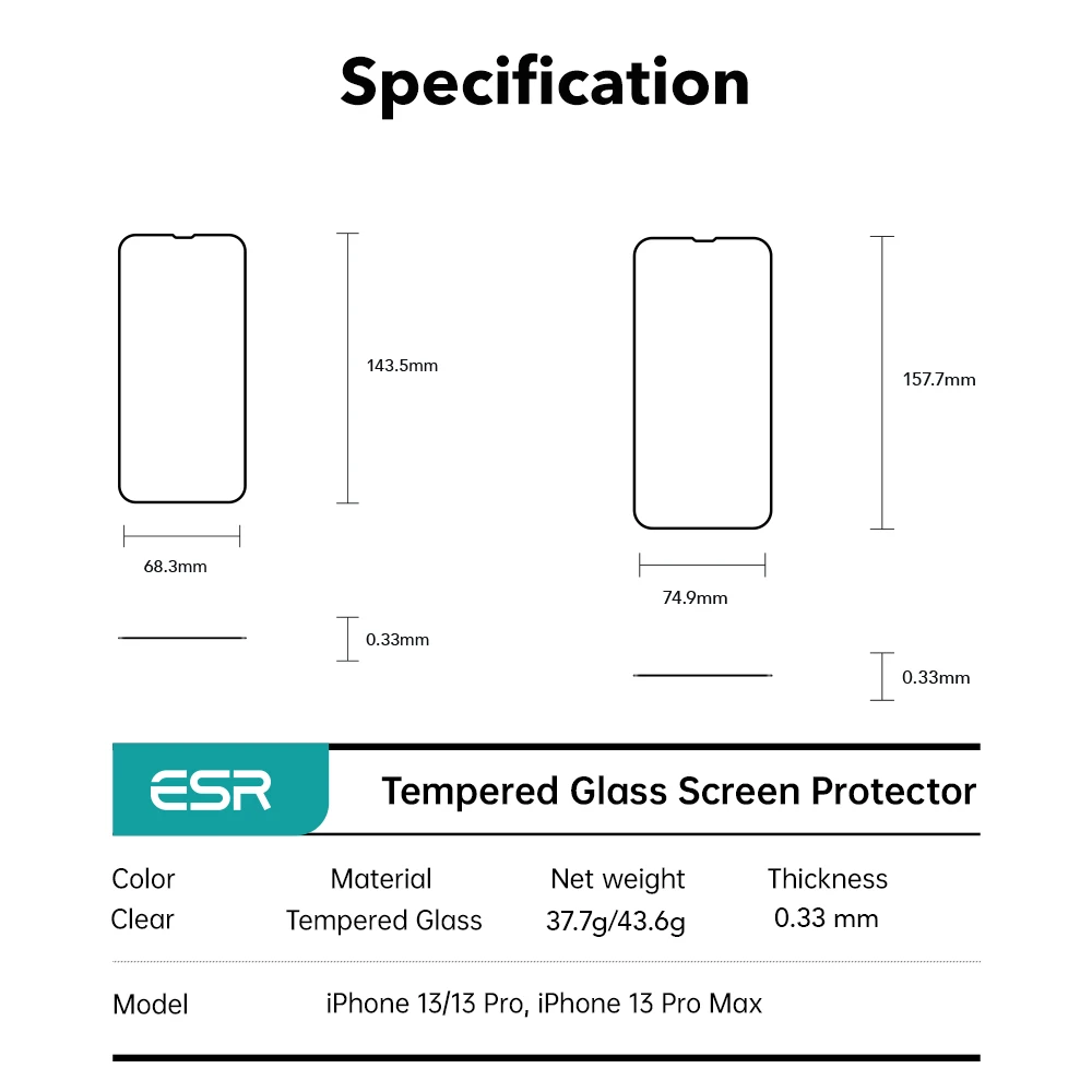 Сверхпрочное стекло ESR для iPhone 13 Pro Max, Защита экрана для iPhone 13 Pro Mini, закаленное стекло, полное покрытие, защитная пленка