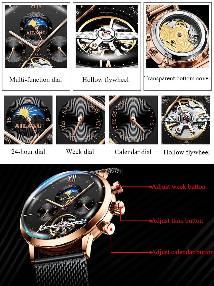 Часы наручные AILANG мужские с турбийоном, водонепроницаемые автоматические механические, минималистский дизайн, новейший дизайн