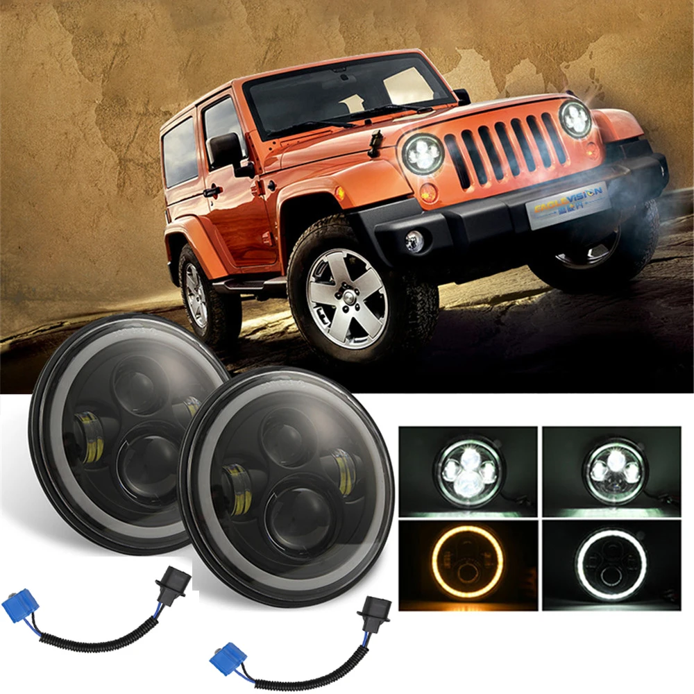 2 шт., 7-дюймовые светодиодный льные светодиодные фары, фары для внедорожников H4 светодиодный ные глаза ангела для Лада Нива 4X4 УАЗ Хантер, катер, рабочая искусственная кожа