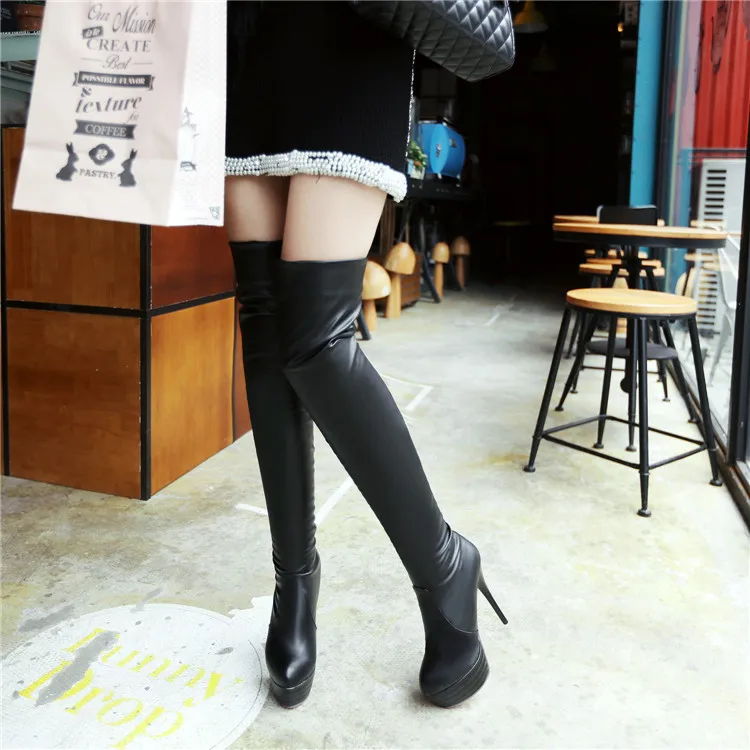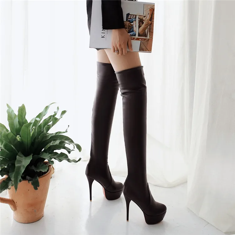 Женские сапоги выше колена на платформе, коричневые, черные или бел...